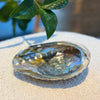 Smudgen: De abalone-schelp wordt veel gebruikt als natuurlijke houder bij smudge-rituelen. Plaats hierin je brandende witte salie, palo santo of reinigende kruiden om de rook veilig te laten verspreiden.