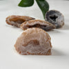 Deze agaatgeodes bevatten kristalvorming. De geode zuivert de energie in de ruimte en nodigt uit om te ontspannen. Ook geeft de agaat geode een positieve stemming en helpt om de energie ‘schoon’ te houden. De agaatgeodes zijn een mooie toevoeging aan het interieur en ook handig om bij je te dragen.
