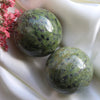 Deze groene serpentijnbol ondersteunt het in evenwicht houden van emoties en situaties. De steen staat ook bekend als de steen van innerlijke vrede.